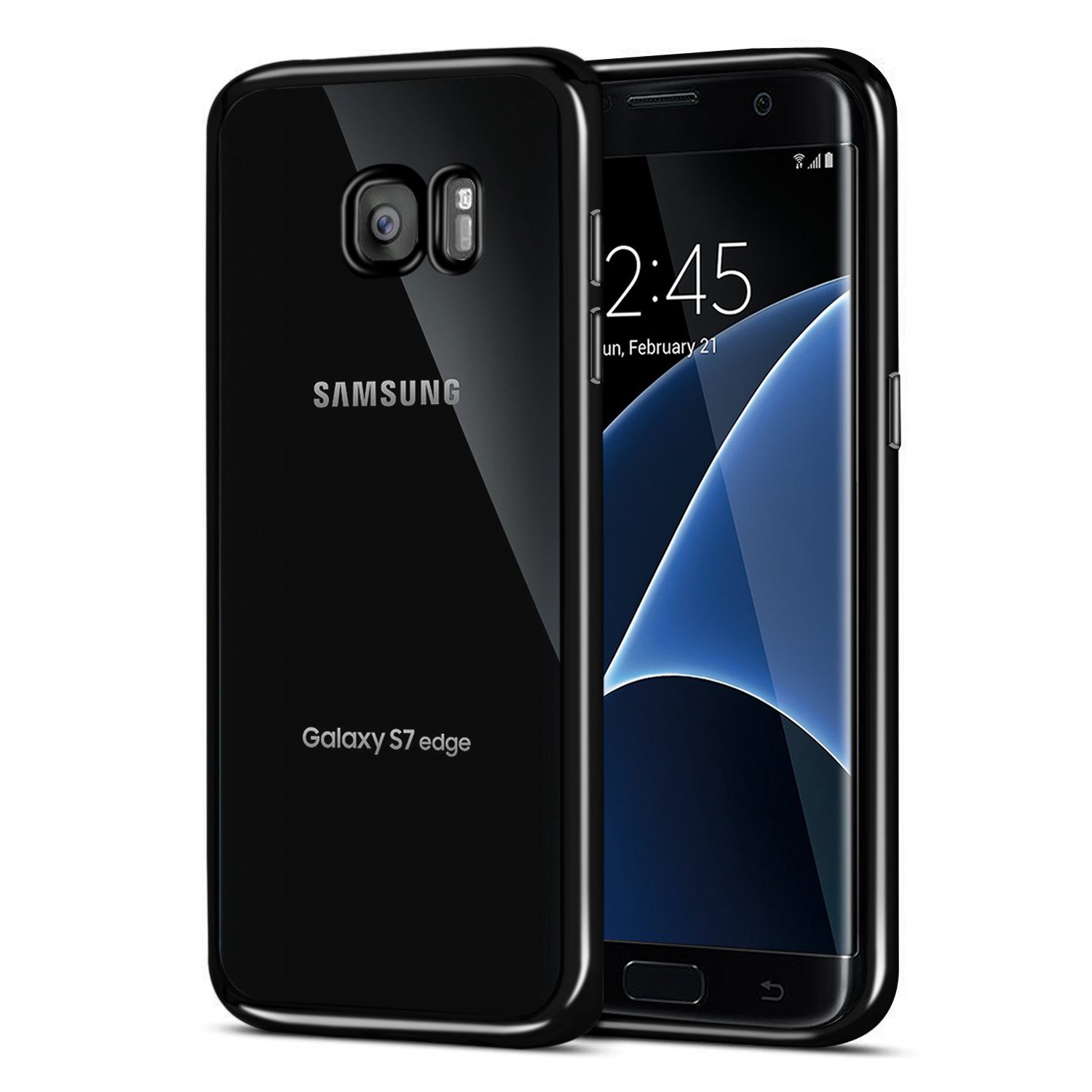 Custodia Galaxy S7 Edge, Orlegol Galaxy S7 Edge Bumper Case Morbida Flessibile Estremamente TPU Gel Sottile Pelle Trasparente Antigraffio Protezione Cover per Samsung Galaxy S7 Edge - Jet Black specificazione