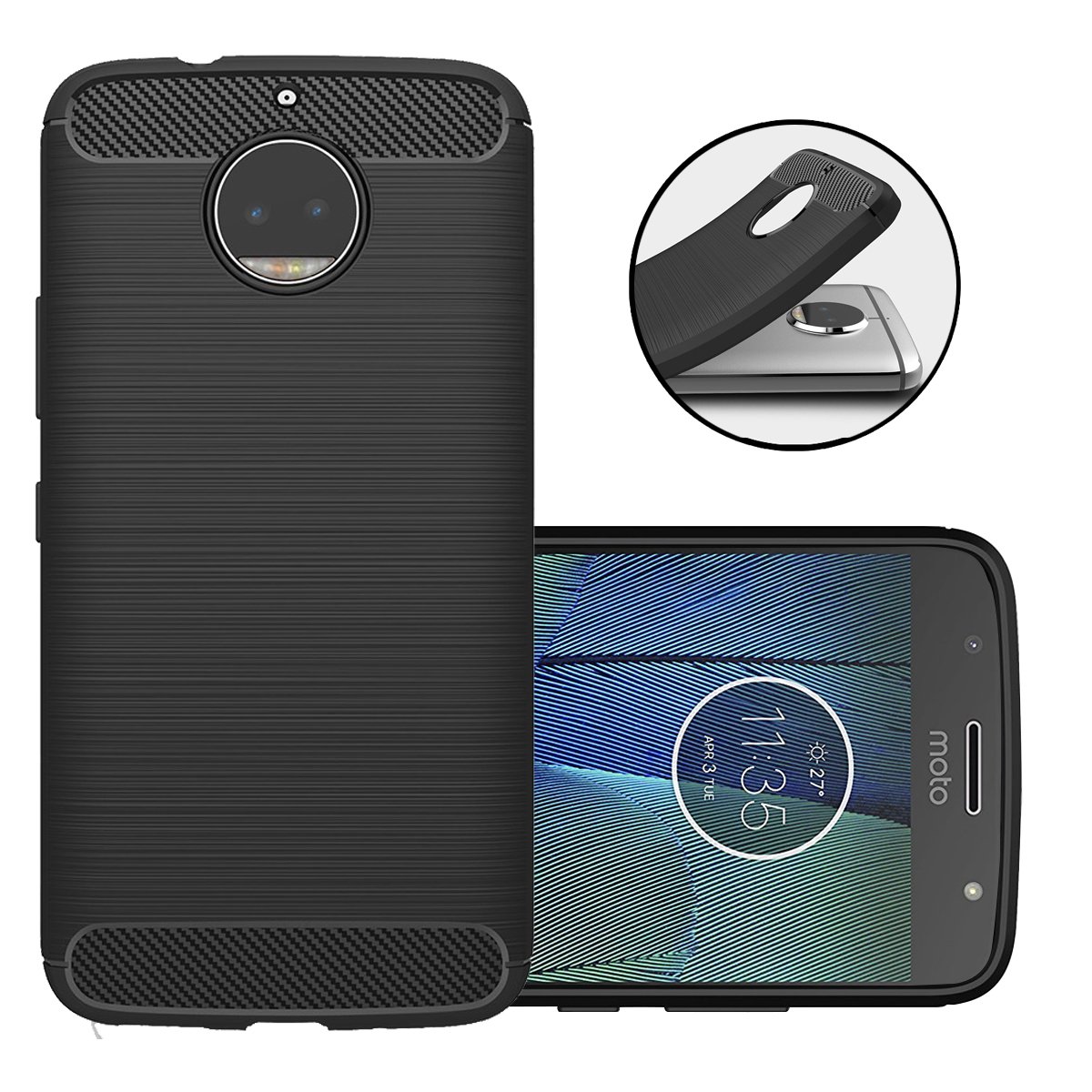 1. Cover Lenovo Moto G5S Plus, Materiale di TPU flessibile e resistente offre una presa morbida e confortevole.